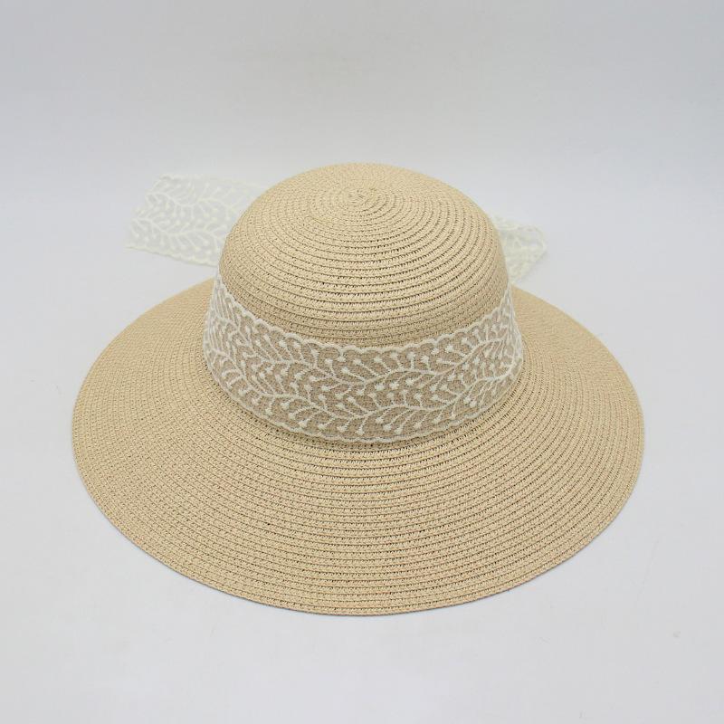 Straw Hat Women'S Big Brim Seaside Sunshade Beach Hat Versatile Lace Bow Sun Hat