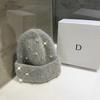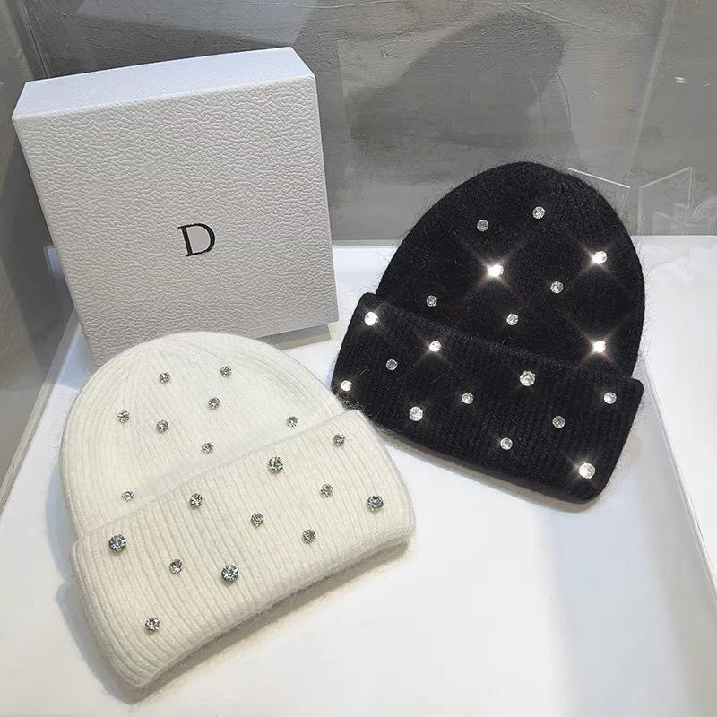 French Light Luxury Rhinestone Heavy Industry Rabbit Hair Knitted Hat Women'S Sweet Versatile Headgear Outdoor Thermal Hat