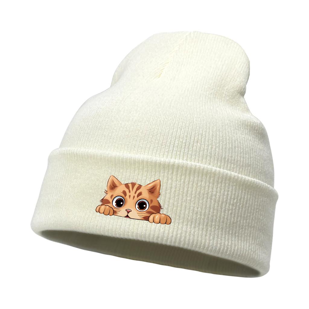 Lovely Cat Print Unisex Winter Hats Knitted Hat For Woman Warm Knit Cap Beanie Perfect For Travelling One Size Fits All