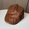Early Autumn Big Head Circumference Pu Reverse Wear Forward Hat Men And Women Hong Kong Style Painter Hat British Retro Beret Hat