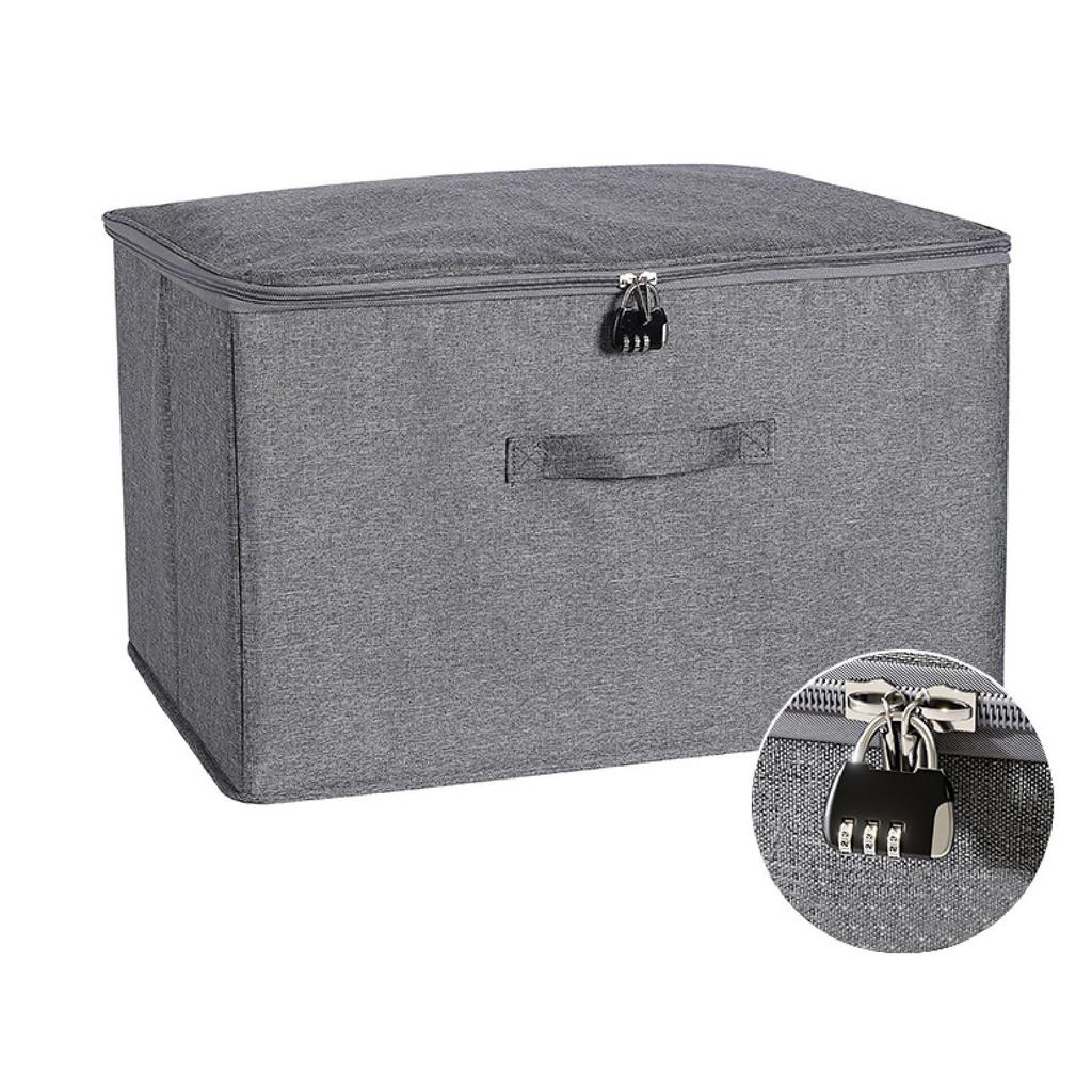 CAWKAY Storage Box with Key, Combination Lock, Large Capacity, Foldable, with Handle, Clothes Storage, Lid, Stylish Fabric, Zipper Closure (3L)