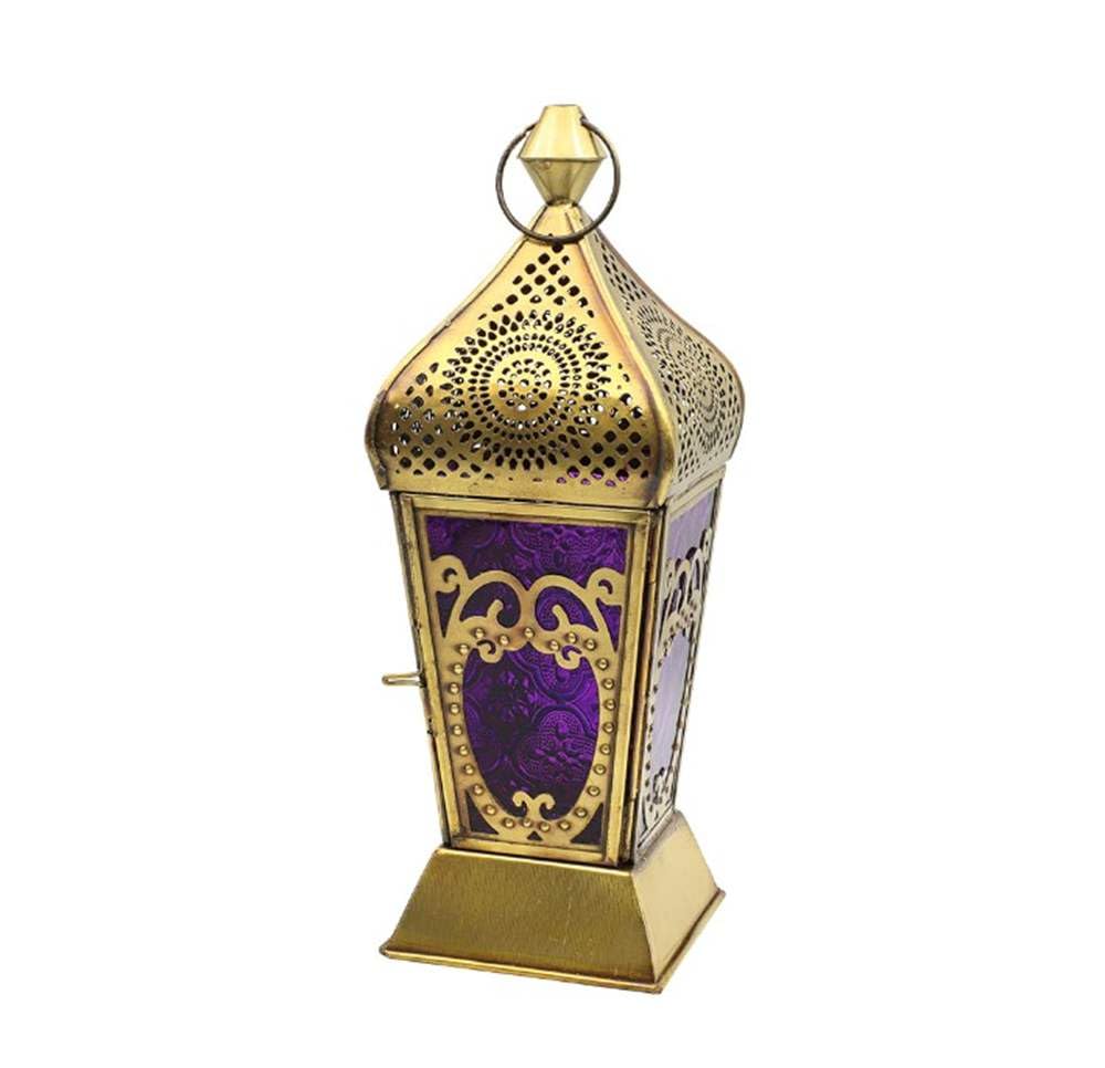 This beautiful Moroccan lamp features delicate openwork patterns and colorful relief glass.