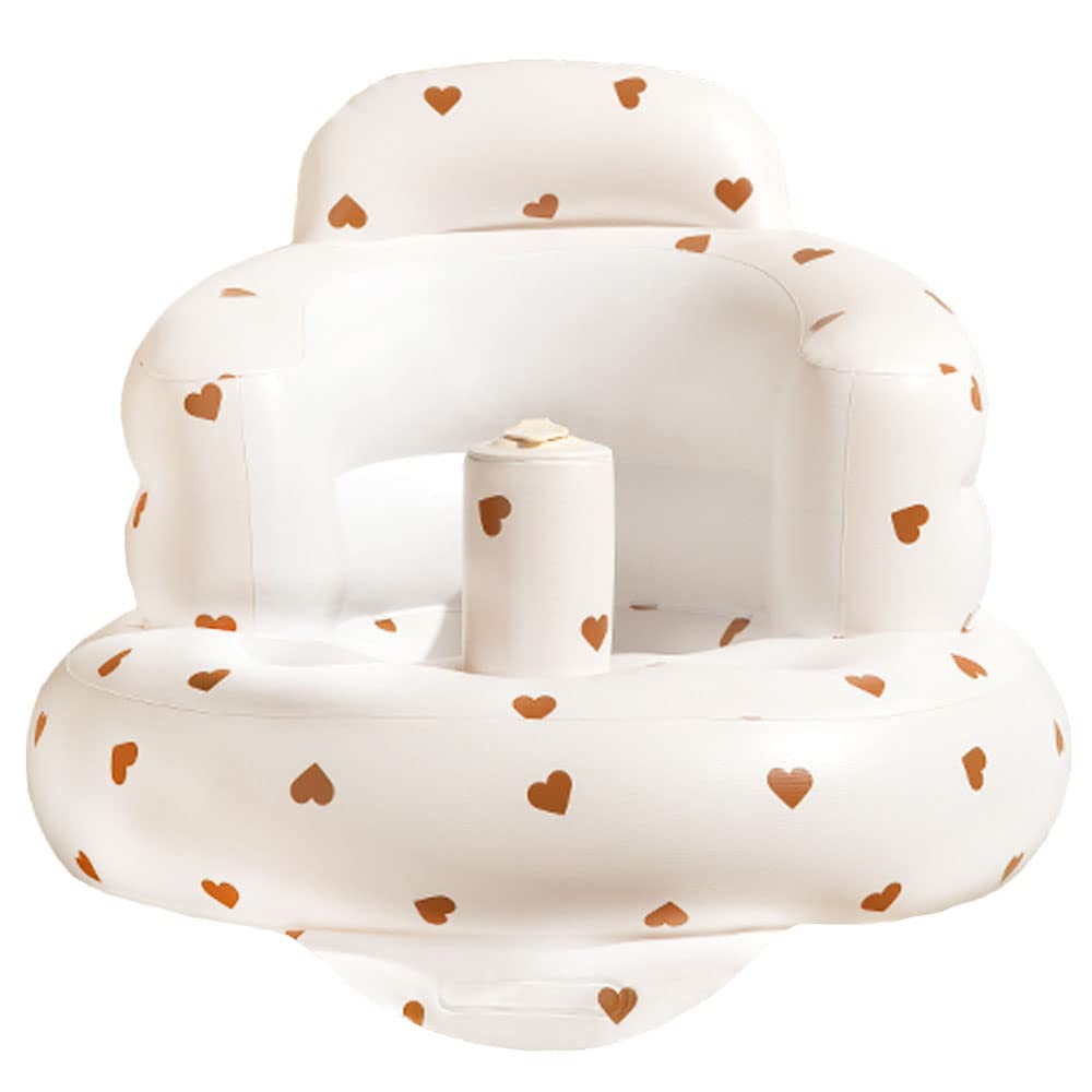 Dodulara Baby Bath Chair, Fluffy Shower Chair for Bathing and Meals, Foldable, Inflatable, and Water-Resistant for Sitting Practice (Heart of Love)