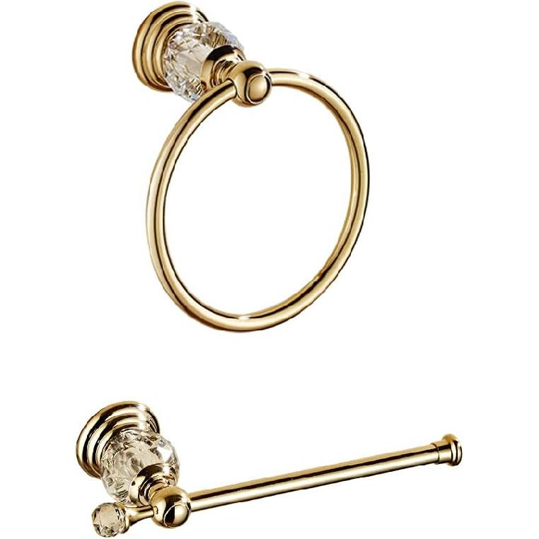 WOLIBEER Crystal Gold Toilet Paper Holder Hand Towel Ring Crystal Bathroom Accessories Set Modern Paper Towel Holder Include 2 Pieces Bathroom