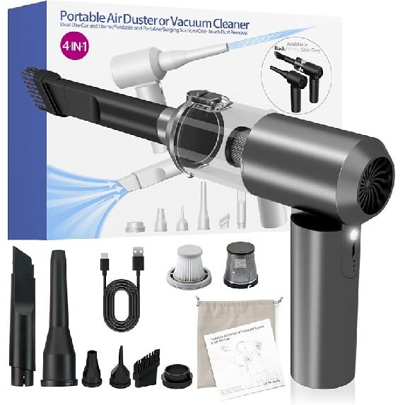 Car Vacuum Cleaner, 16000PA Car Vacuum Portable Cordless, 4-in-1 Mini Handheld Vacuum with Brushless Motor and Type C, Strong Suction Portable Vacuum