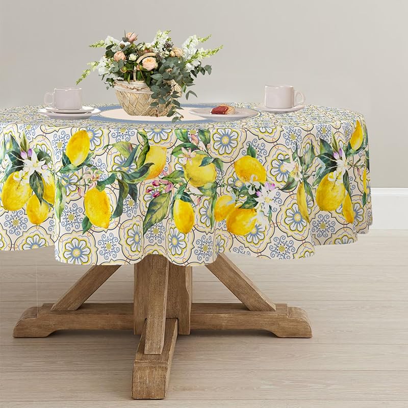 Yighty Round Tablecloth 60x60 Inch, Waterproof Wrinkle Resistant Durable Polyester Table Cover Blue Floral Tablecloth for Indoor and Outdoor, Holiday