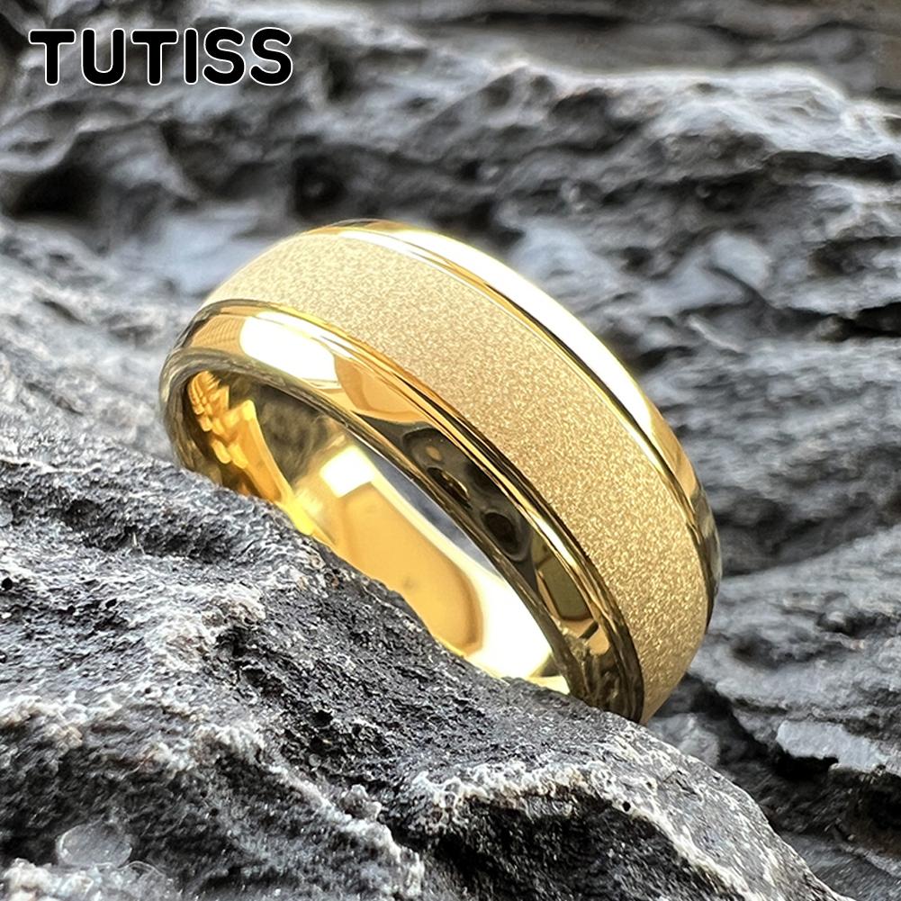 TUTISS 6/8mm Ready To Ship Sandblasted Gold Tungsten Ring for Men Women Engagement Wedding Band Comfortable Fit