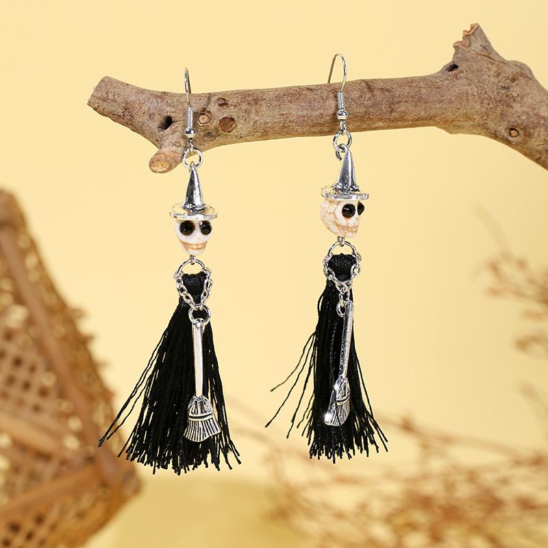 New Halloween Asymmetric Skull Skeleton Drop Earrings for Women Gothic Punk Long Tassel Earrings Girl Party Jewelry Gifts