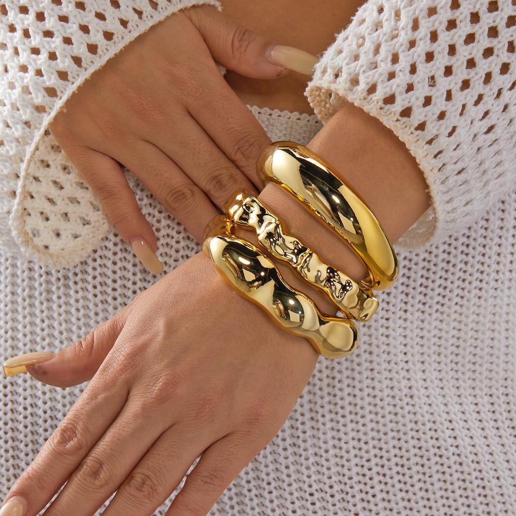 3PCS Exaggerated Acrylic Irregular Cuff Bracelets for Women Punk Geometric Wide Chunky Open Bracelets Set Daily Party Jewelry