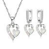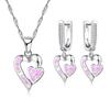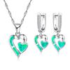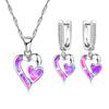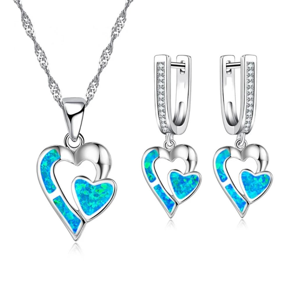 Romantic Double Heart Imitation Blue Fire Opal Pendant Necklace Earrings For Women Wedding Band Jewelry Accessories Set