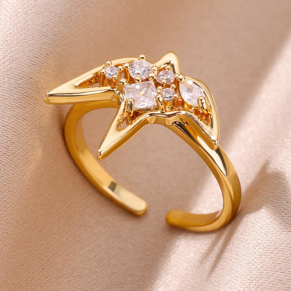 Geometric Zircon Swallow Ring for Women Gold Color Stainless Steel Opening Ring Aesthetic Wedding Christmas Jewelry Gift