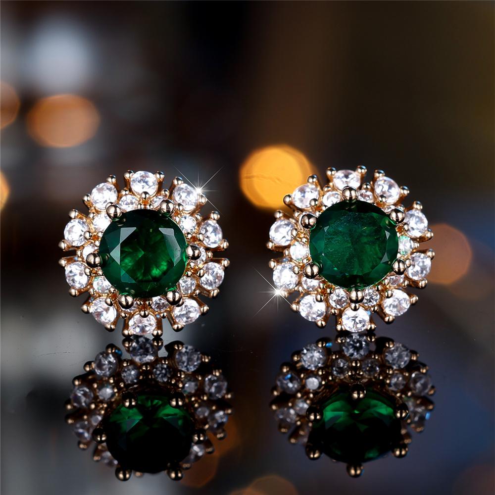 Luxury Female White Green Round Zircon Stone Wedding Jewelry Vintage Gold Color Stud Earrings For Women