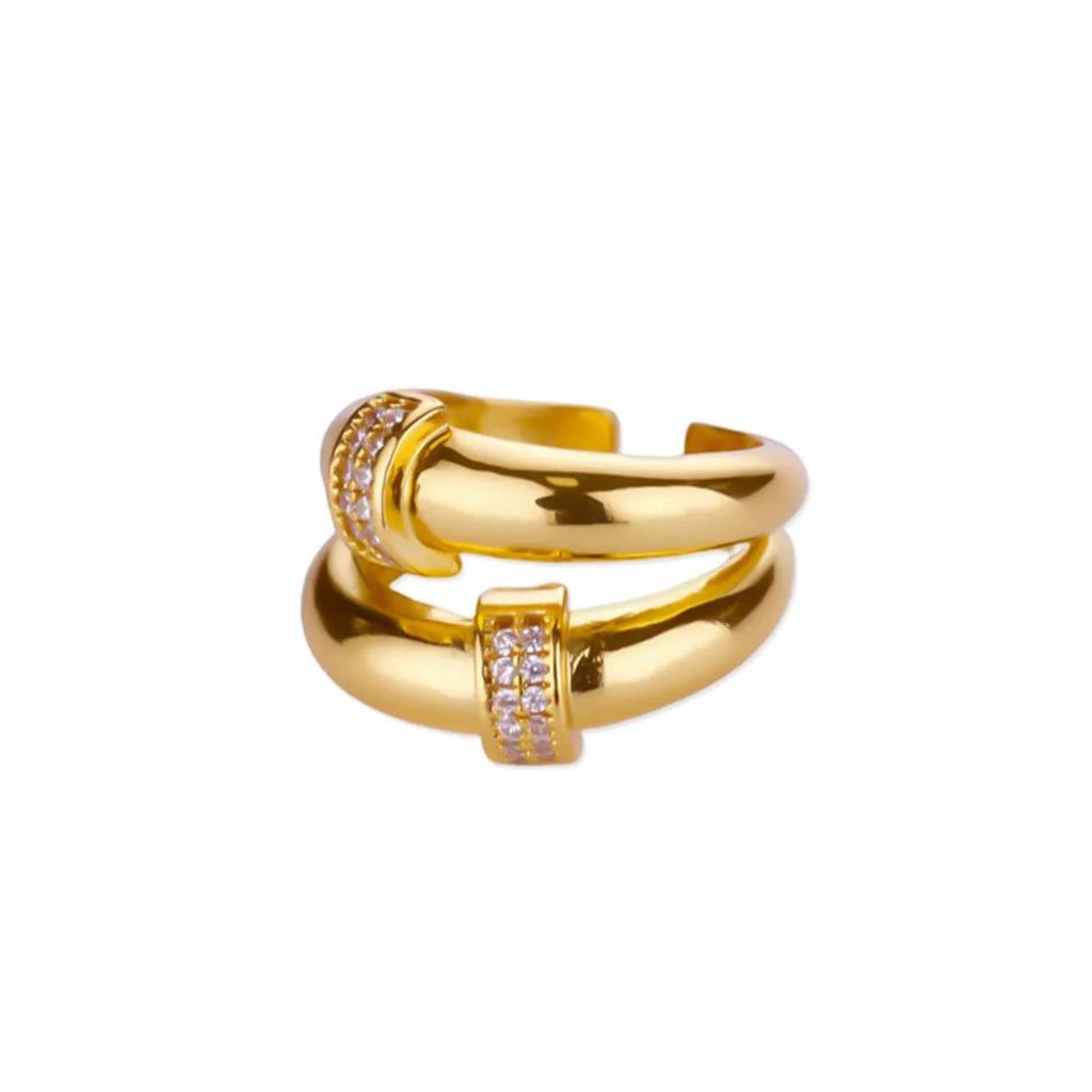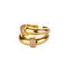 Zircon Double Round Rings For Women Gold Color Stainless Steel Geometric Adjustable Finger Rings Wedding Couple Jewelry Gifts