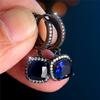Trendy Crystal Female Blue White Zircon Stone Hoop Earrings Vintage Black Gold Color Wedding Jewelry For Women