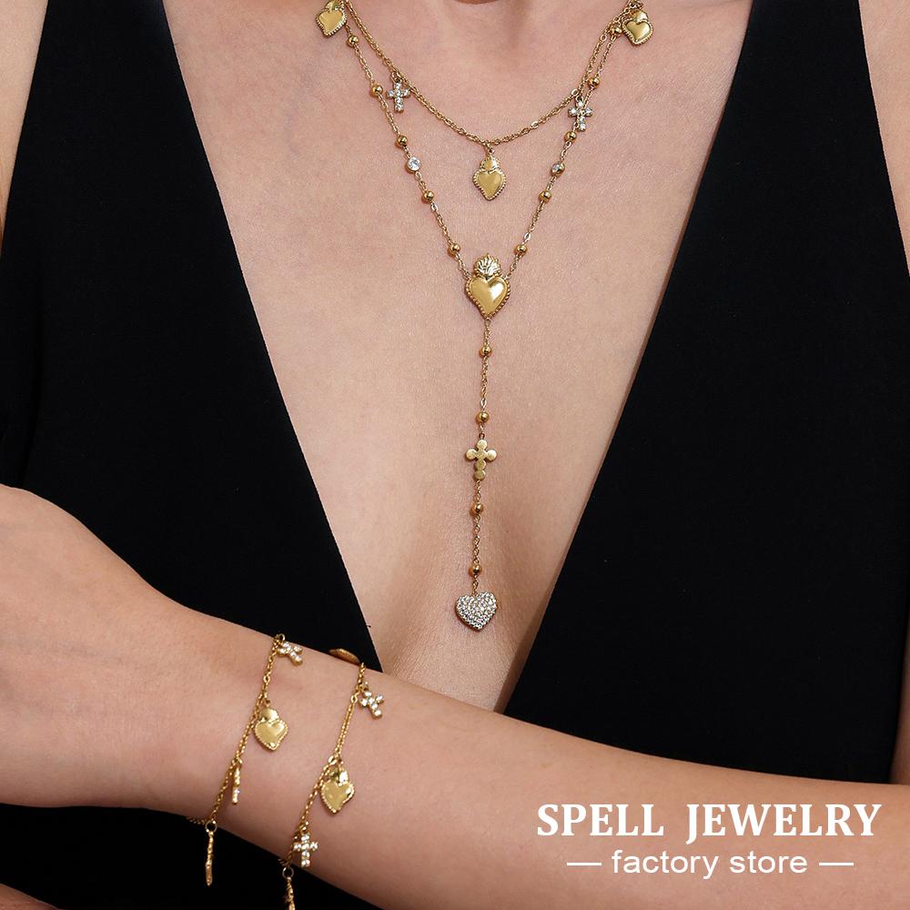 Cross And Heart Charms Necklace Bracelet In Stainless Steel 18k Gold Plated Chain Necklaces Bracelets Jewelry Set For Women