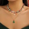KunJoe 3Pcs/Set 2026 Christmas Tree Snowman Pendant Necklace Women Polymer Clay Red Green Beaded Choker Christmas Gift