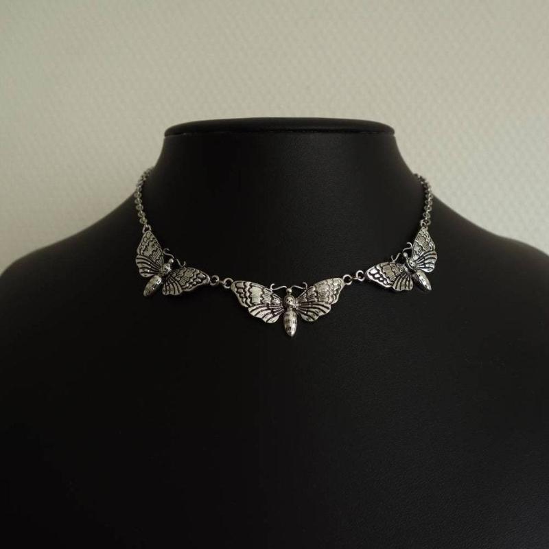 1pc Vintage Skeleton Moth Necklace, Gold Metal Material, Punk Style, Unisex Everyday Wear