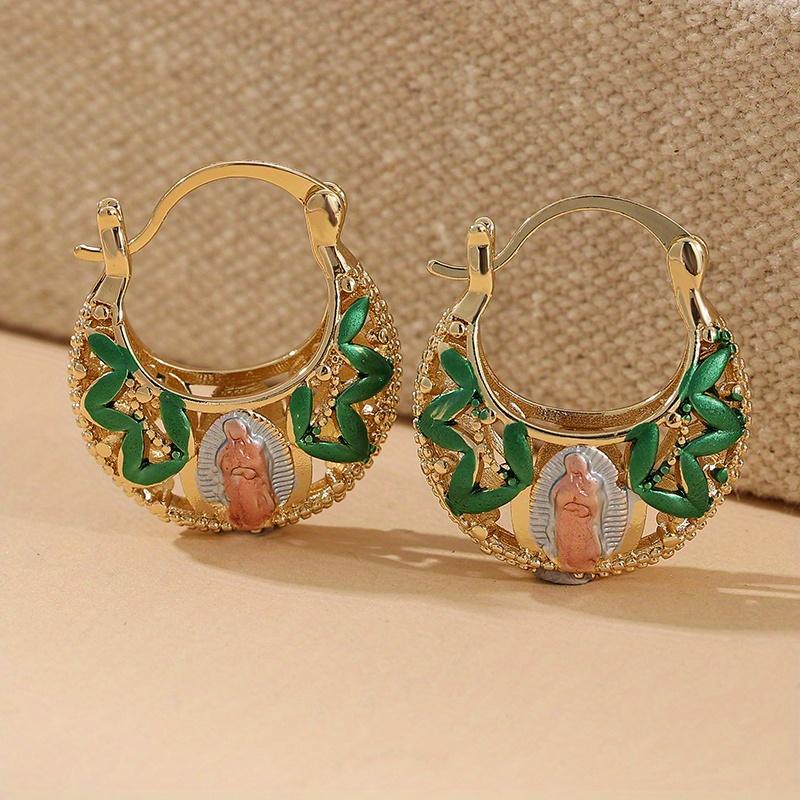 Vintage Creative Hand Carved Hollow Golden Plated Hoop Earrings for Women Bohemian Style Banquet Festival Jewelry Crafts