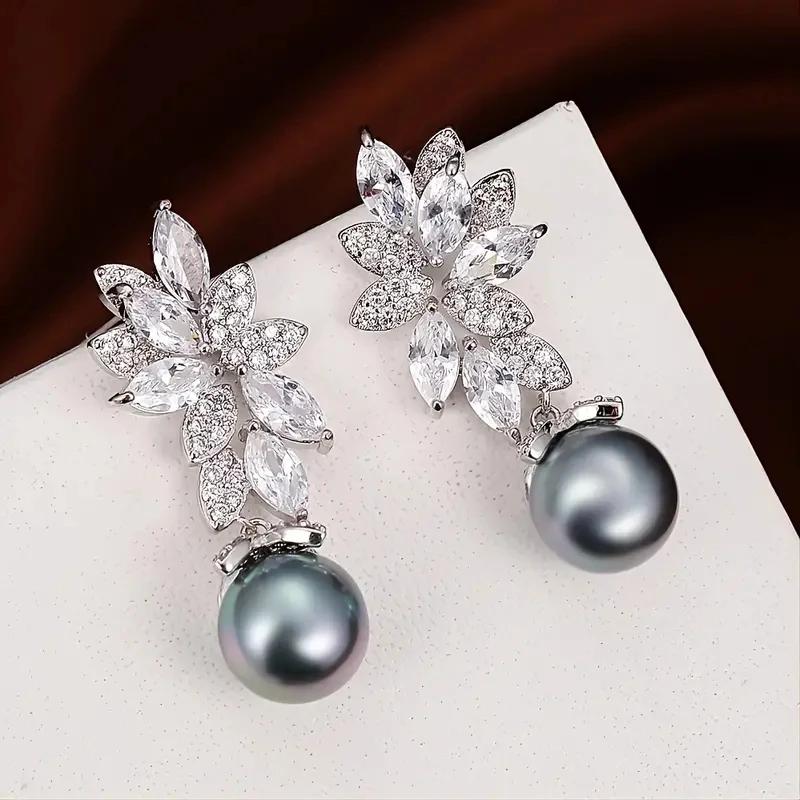 Luxury Multi Colored Imitation Pearl Dangle Earrings Leaf Design Aesthetic Earrings for Women Dazzling CZ Trendy Jewelry