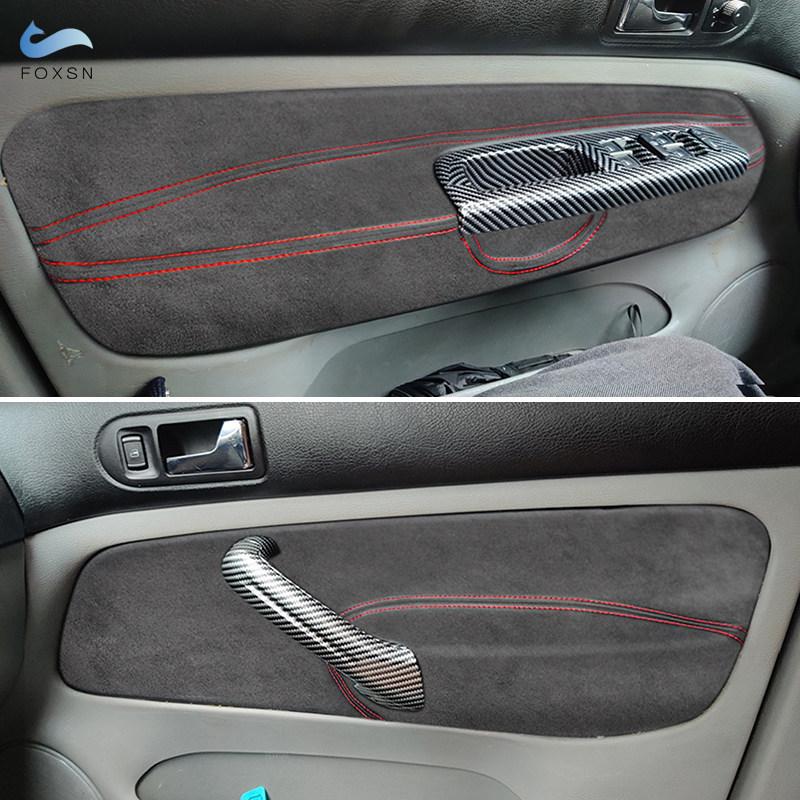 For VW Golf 4 MK4 Bora Jetta 1998 1999 2000 - 2005 LHD 2pcs Interior Front Door Armrest Panel Cover Trim Suede Leather Red Line
