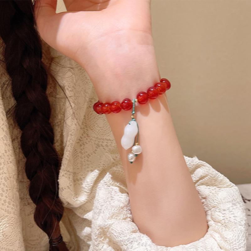 Chinese Style Red Beaded Peanut Bracelet Women's Elastic Rope Adjustable Bracelet Simple Jewelry