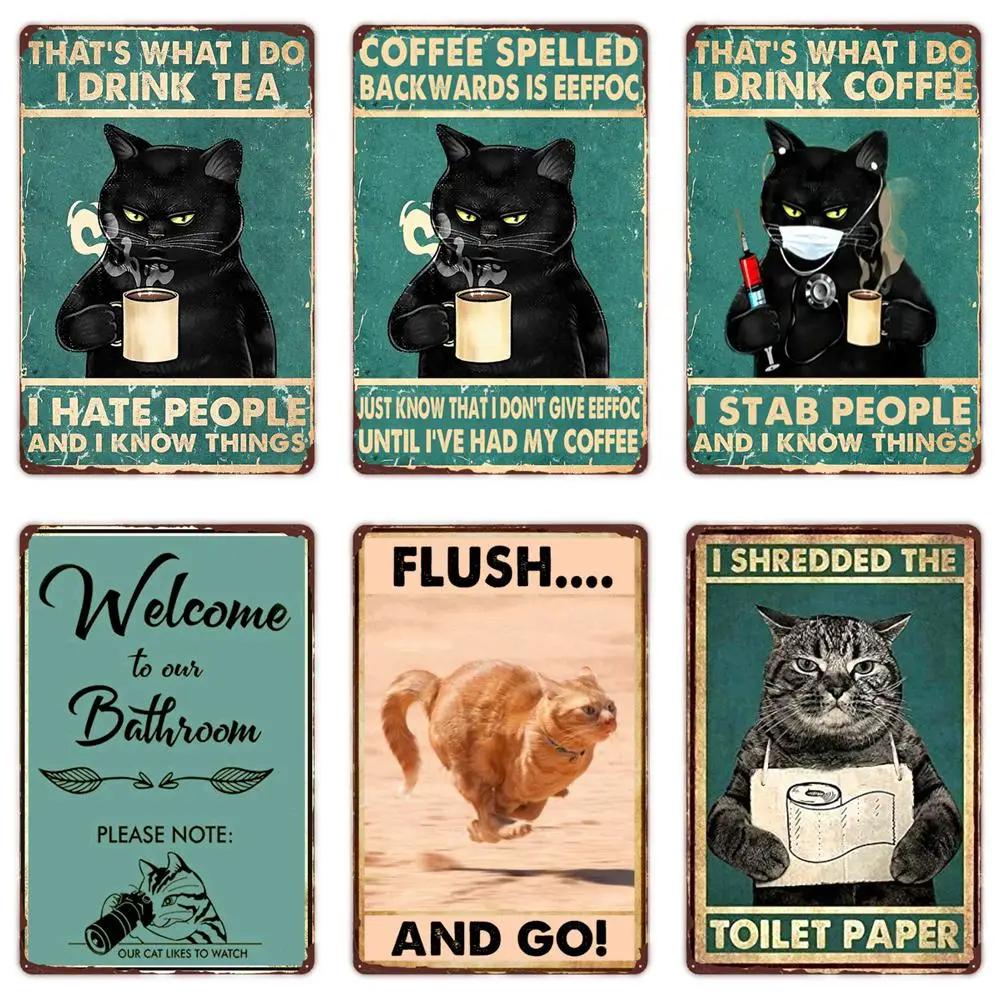 Black Cat Vintage Tin Signs, Funny Metal Art Poster, Wall Decor, Home, Bar, Pub, Cafe, Farm, Bathroom, I Hate Everyone