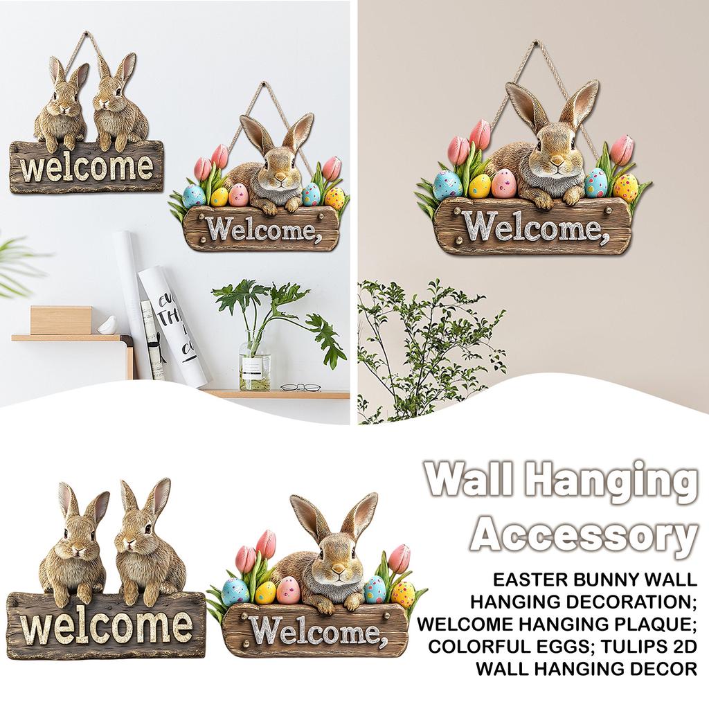 Easter Bunny Wall Hanging Decoration; Welcome Hanging Plaque; Colorful Eggs; Tulips 2D Wall Hanging Decor.