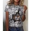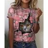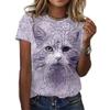 Women's T-shirt 3D Printed Casual Short Sleeved Cute Kitten Pattern Print O-Neck Top Fashionable Street Women's Clothing