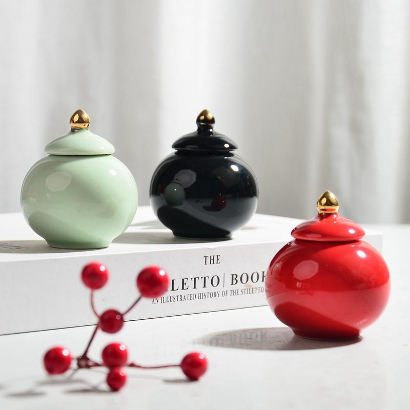 Small Ceramic Powder Salt Sealed Jar Gold-topped Round Balm Cream Bottle Tea Ceramic Jar