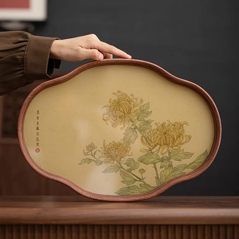 Begonia Glass Lotus Tea TraySmall Chinese Pot Bearing Dry Bubble TableBamboo Premium Tea Storage Tray