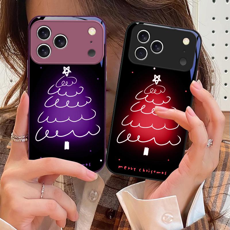 White Line Christmas Tree For iPhone 17 Air 16 E 15 14 13 Plus 12 Mini 11 17 Pro Max XR Xs Max 16E 7 8 Tempered Glass Phone Case