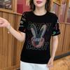 Summer Round Neck Short-sleeved T-shirt Women's Large Size Rhinestone Decorative Top