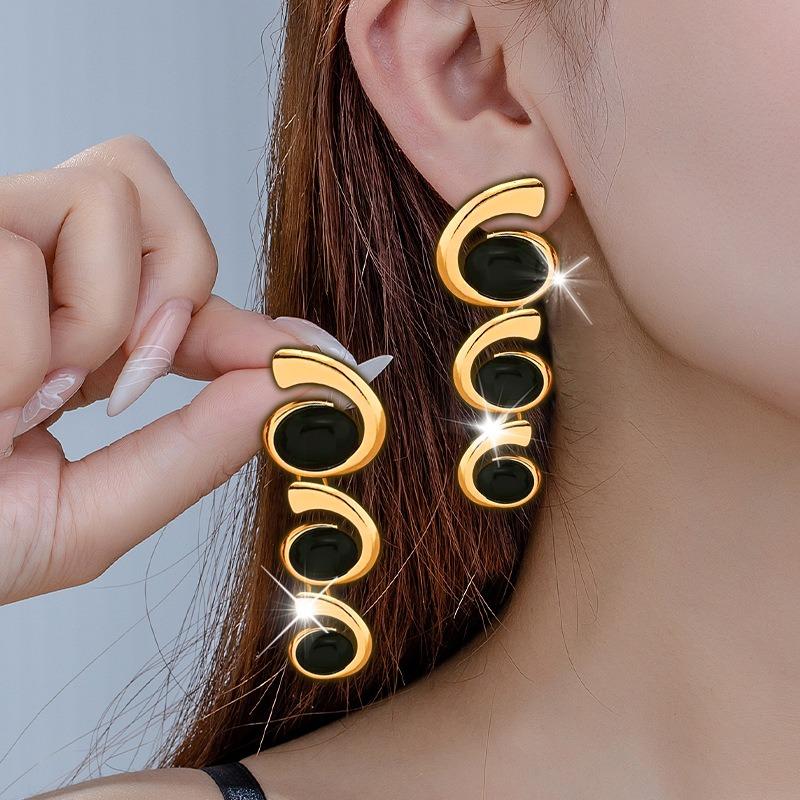 Best-selling for Elegant Women's Inlaid Oval Stud Earrings, Fashionable Personality with Earrings for Daily Wear