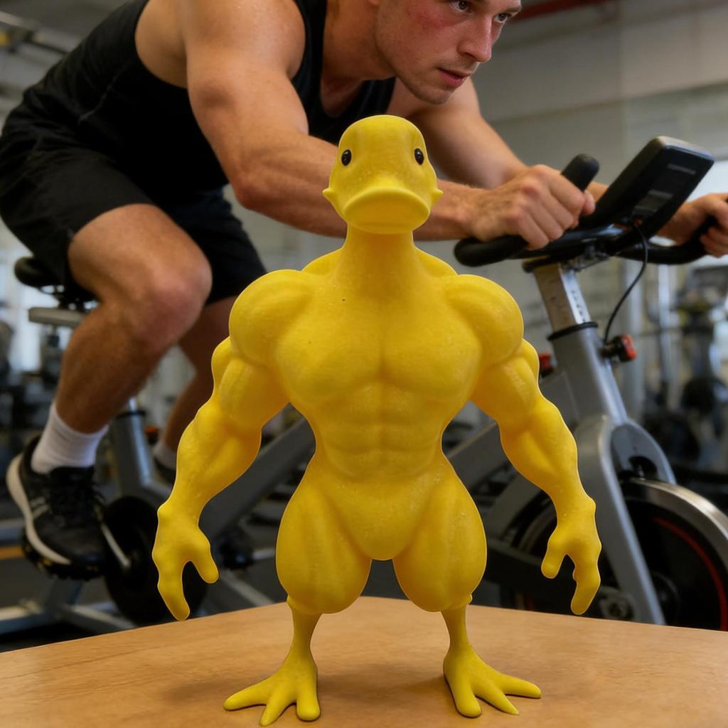 Flexing Muscle Duck Statue 3D Printed Gym Decor For Men Funny Bodybuilder Duck Collectible Desktop Sculpture