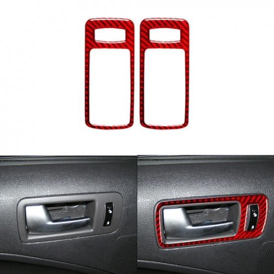 Red Carbon Fiber Door Handle Decorative Cover Trim For Ford Mustang 2005-2009