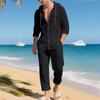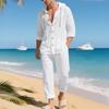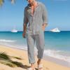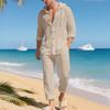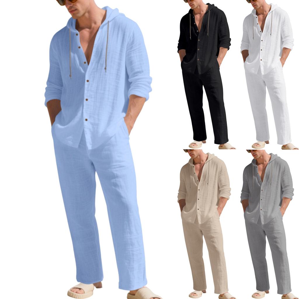 Men's 2,Piece Linen Hooded Shirt Set | Loose Fit Breathable Beach Casual Pants For Daily & Vacation Wear