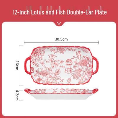 Chinese Wedding Red Floral 12-inch Fish Plate