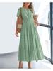 Step out in effortless style with this charming short sleeve midi dress. Designed with a universally flattering silhouette, it features a classic V-neckline, gentle short sleeves, and a defined waist that flows into a beautifully tiered ruffle hem. Available in a spectrum of versatile colors, this dress is a wardrobe staple perfect for brunch dates, casual outings, or a relaxed day in the sun. The breezy fabric and comfortable fit ensure all-day ease and movement.