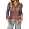 Women's Retro Street Lazy V,neck Long Sleeve Button Plaid Print Pullover Top