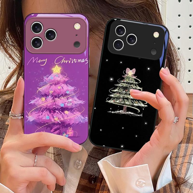 Decorated Christmas Tree For iPhone 17 Air 16 E 15 14 13 Plus 12 Mini 11 17 Pro Max XR Xs Max 16E 7 8 Tempered Glass Phone Case