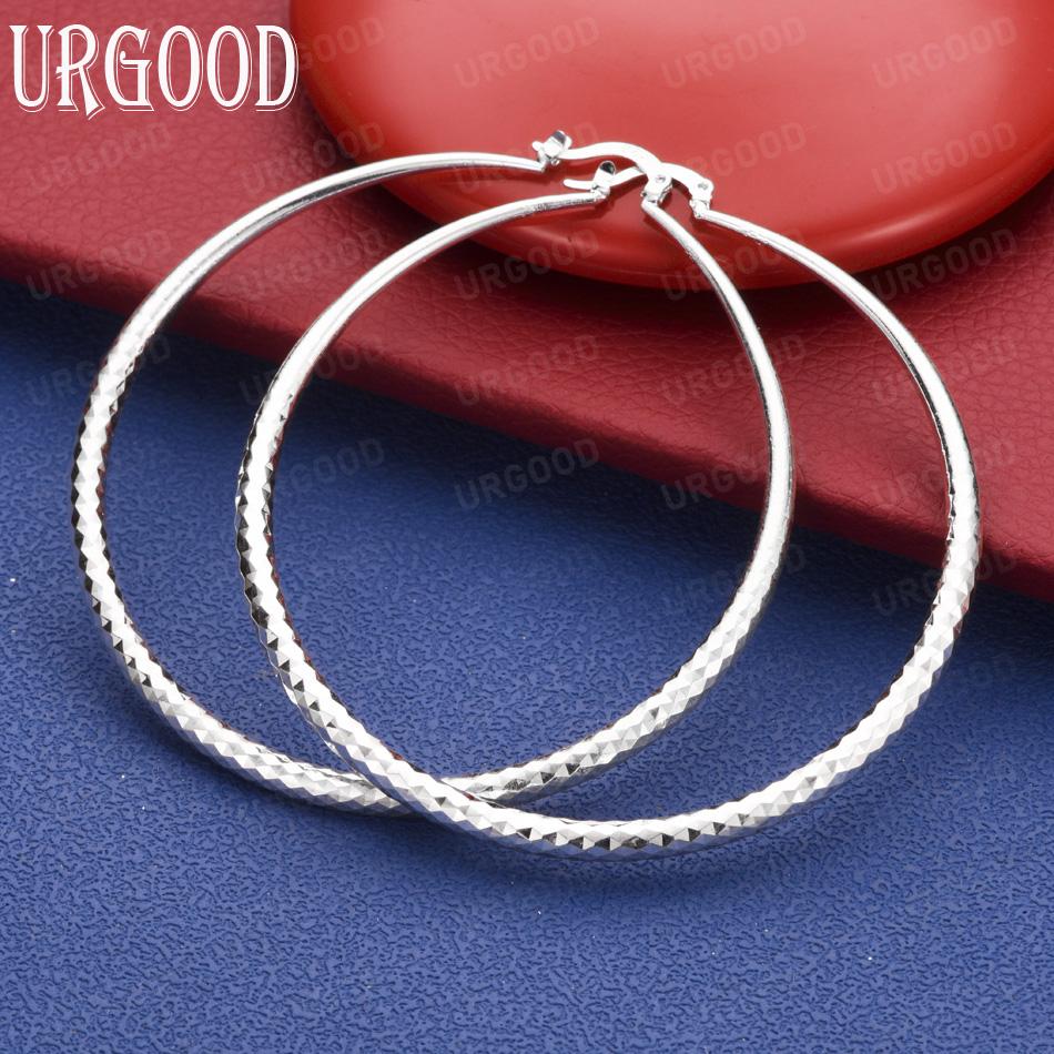 925 Sterling Silver 70mm Large Circle Pattern Pierced Earrings for Wedding Jewelry