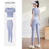 New Summer Sports Suit for Women Tight Quick Drying Short Sleeve Top with Underwire Support Full Length Yoga Pants Fitness Training Sets Famale