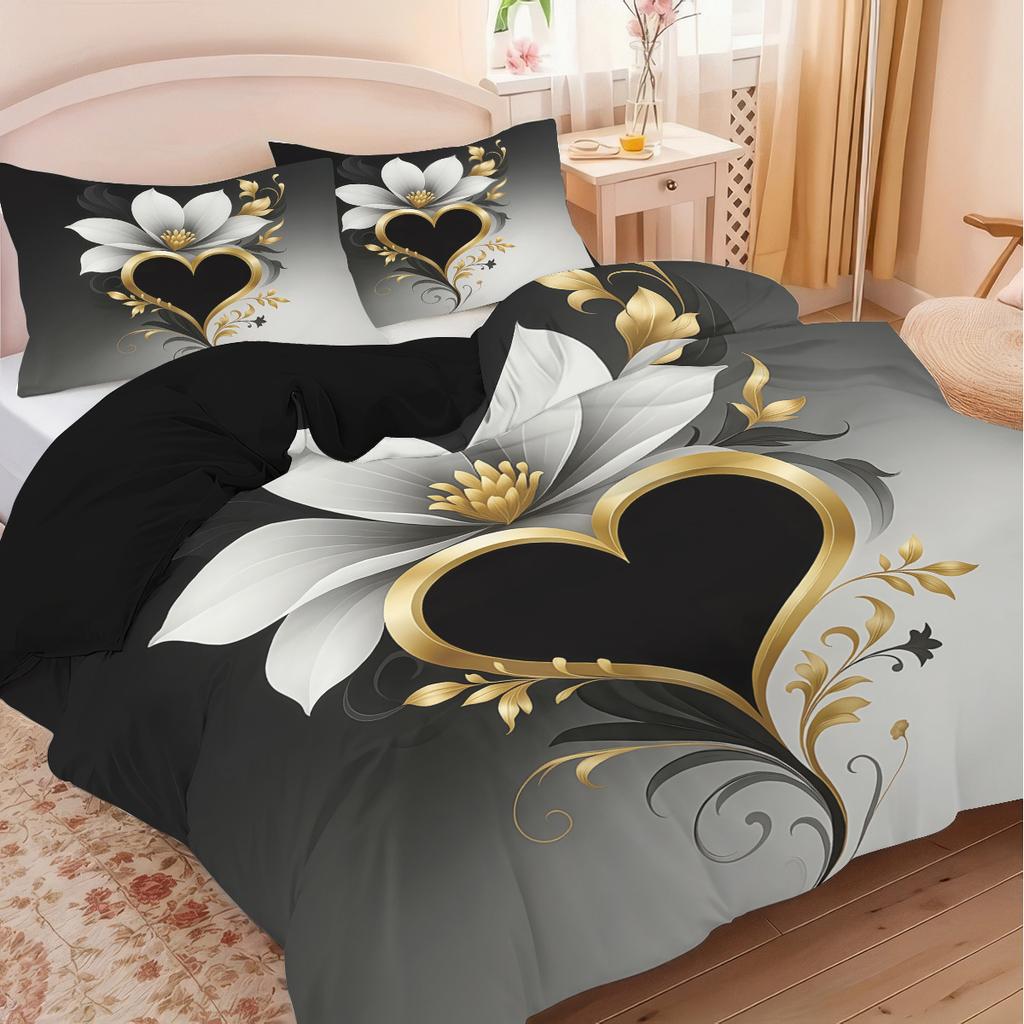 3pcs Abstract Love Floral Design Print Pattern Bedding Set 1 Quilt Cover + 2 Pillowcases, No Core Retro Simple,