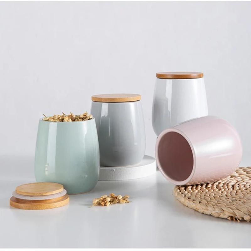 Modern Minimalist Ceramic Wooden Lid Sealed Jar Kitchen Storage Supplies Storage Jar Miscellaneous Grains Coffee Tea Food Jars