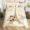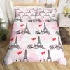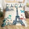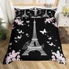 Eiffel Tower Bedding Set Twin Queen Pink Cherry Blossom Duvet Cover Romantic Theme Butterfly Print Comforter Cover for Girl Boys