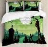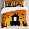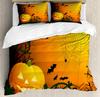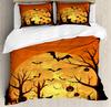 Halloween Duvet Cover Set, Spooky Carved Halloween Pumpkin Lantern Bat Bedding Set Single Twin Full Queen King Comforter Cover
