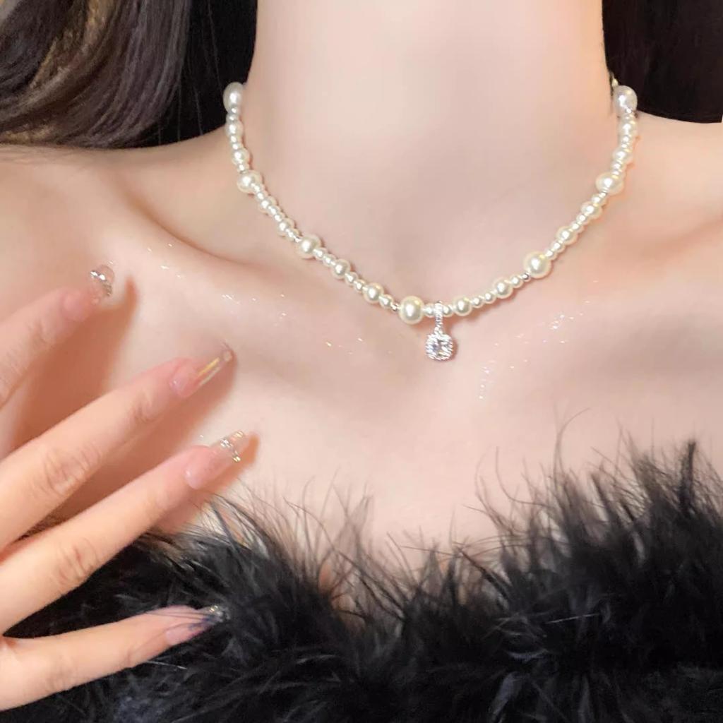 French Sugar Cube Pearl Necklace Femininity Premium Clavicle Chain Exquisite Versatile Necklace Accessories