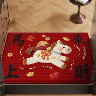 Chinese New Year Decoration Bedroom Bath Non-slip Rug Carpet Entrance Doormat Horse Year Spring Festival Decor