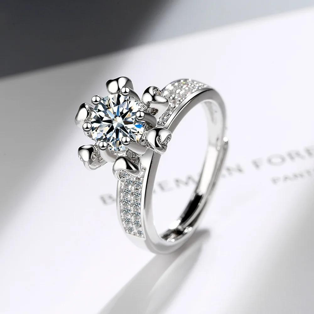 Hot Fashion Female Rings Sterling Silver 6 Claws AAA Zircon Resizable Rings for Women Embellished Anillos Anel Gifts
