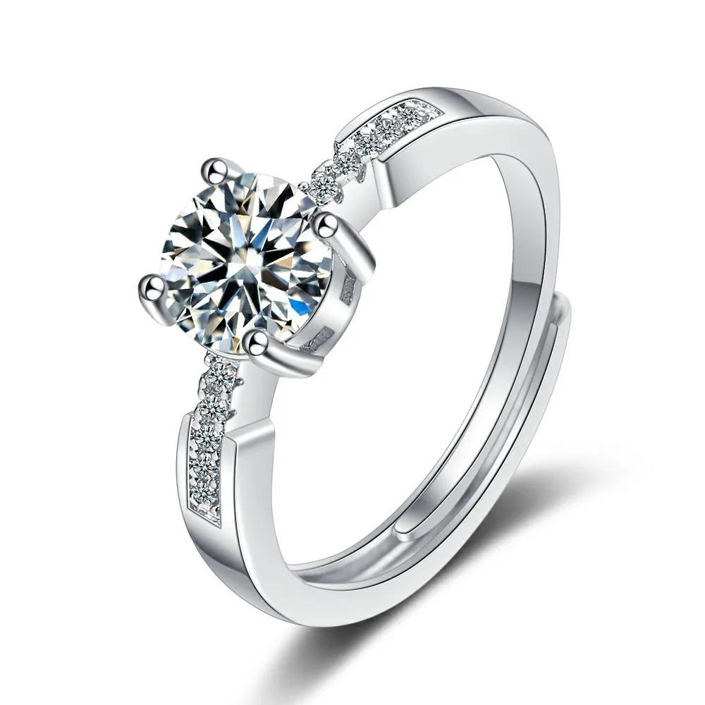 Pure Silver Color Rings for Women 4-claw Cz Dating Party Daily-Life Square Simple Sterling Ring Fine Bijoux Gifts